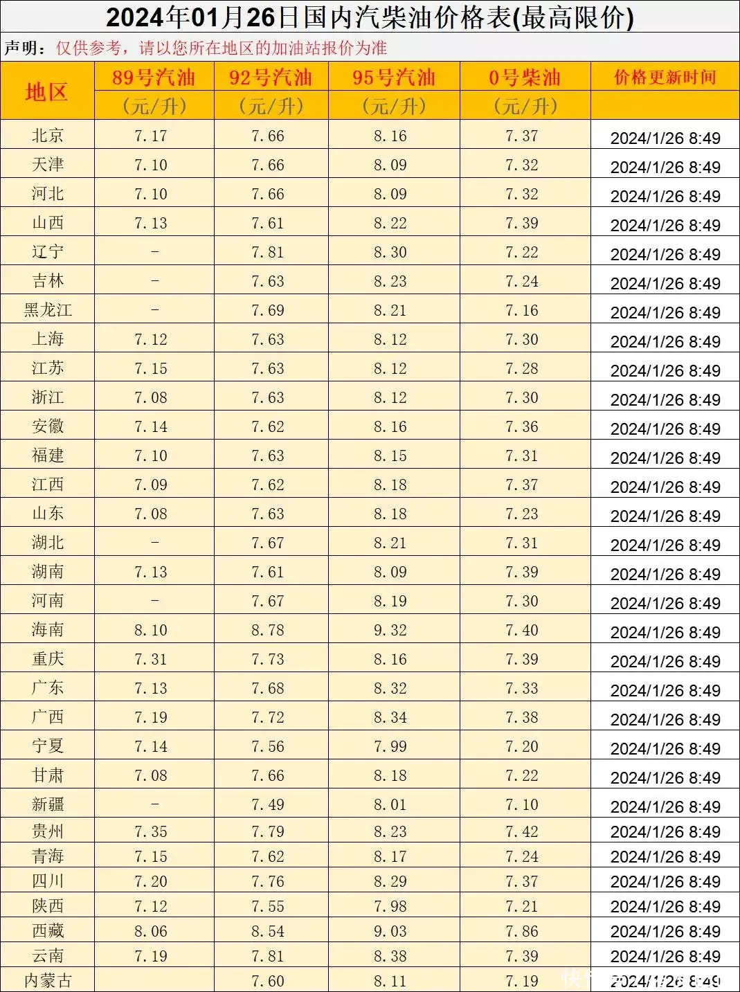 因此,在多重因素下,国际油价大幅上涨,这也将支撑本轮国内汽柴油价格上涨的走势,如今,距离油价调整仅剩3个工作日,下周三,年内第3次油价调整,汽柴油价格或将大幅冲高!附2024年1月26日国内各省市92号以及95号汽油价格!