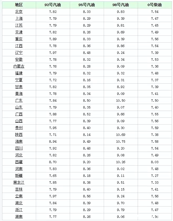 据市场反馈来看,2月17日,国内各省市加油站92号汽油价格不作调整,价格执行2月1日0时以来的水平,其中,在全国地区来看,92号汽油平均报价在7.88元/升,各省市价格普遍在7.65~8.94元,在主流省区之中,山东、福建、吉林、浙江以及上海等地,价格在7.79元,北京、天津以及河北地区报价在7.82元/升!各省市加油站具体报价请参考下图!