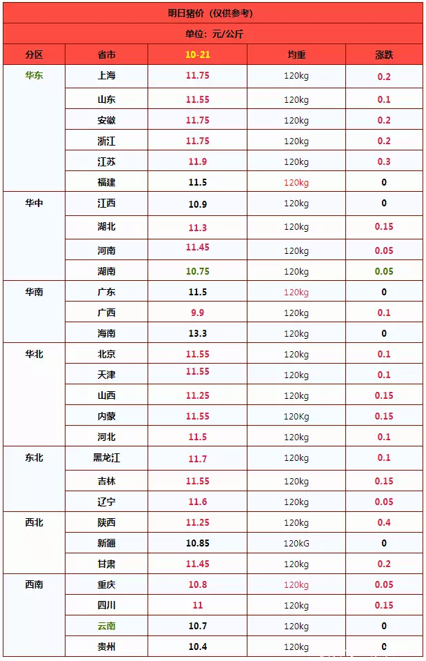 因此,在多空博弈下,受情绪引导,近期,猪价重心偏强,受屠宰场调价,预计,10月21日,外三元标猪报价在11.33元/公斤,后市关注养殖端出栏节奏的变化以及二育入场的变化!