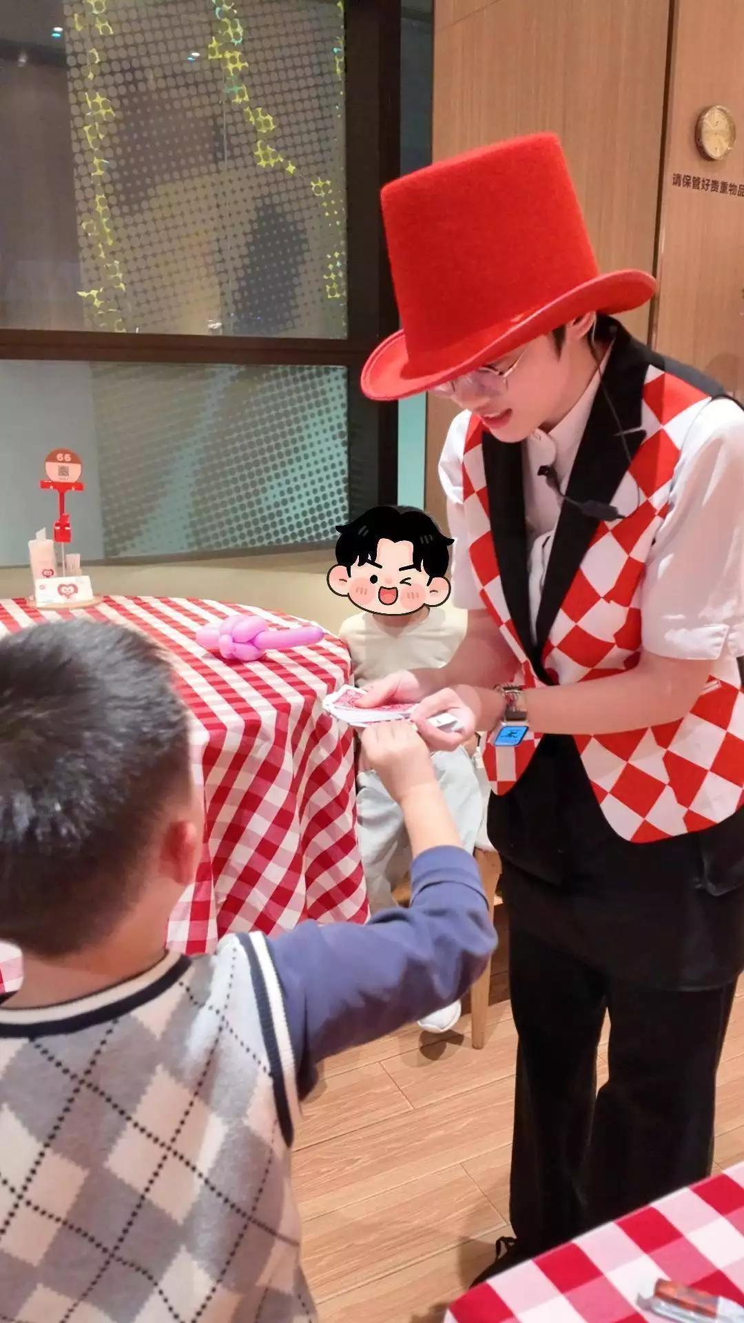 探访过程中,记者观察发现,近四分之三的餐桌都有婴幼儿就餐,中老年家长带低龄宝宝用餐的场景十分普遍,桌上的“宝宝餐”小份餐具与糖果成为这类客群的标配。在就餐人数较多或生日专场时,门店也会安排魔术表演。