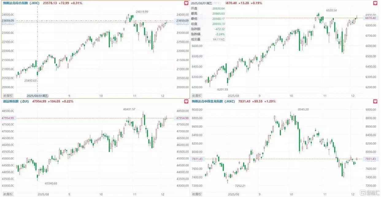 纳斯达克中国金龙指数收涨1.3%,本周累涨约0.5%。热门中概股里,百度收涨5.8%,万国数据涨4.5%,小鹏涨2.7%,新东方涨2.5%,小马智行则跌2.8%,阿特斯太阳能跌3.7%。