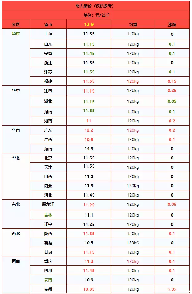 国内南北各省区生猪价格一览表
