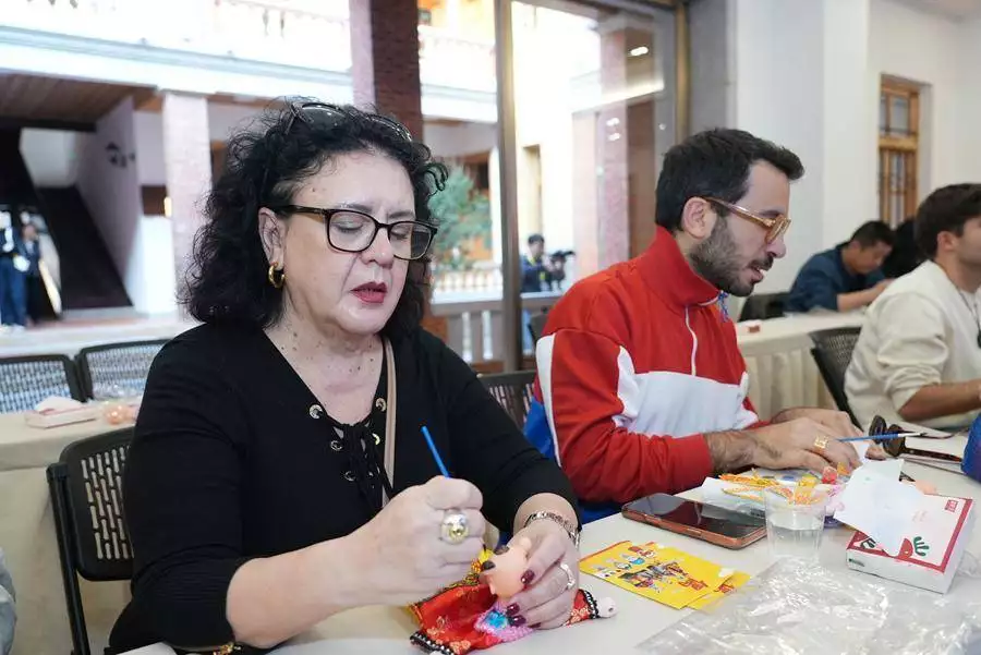 来宾亲身体验木偶粉彩技艺。卢臻摄
